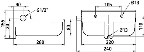 • G 1/2" Anschluss am Niederdruck-Schwimmerventil von links oder rechts möglich